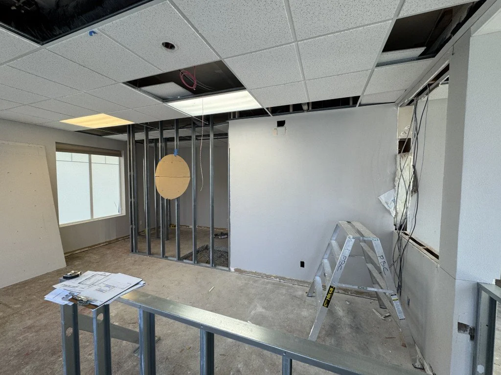 The not-so-glamorous middle phase — ceilings open, walls exposed, and everything in motion as infrastructure gets put in place.