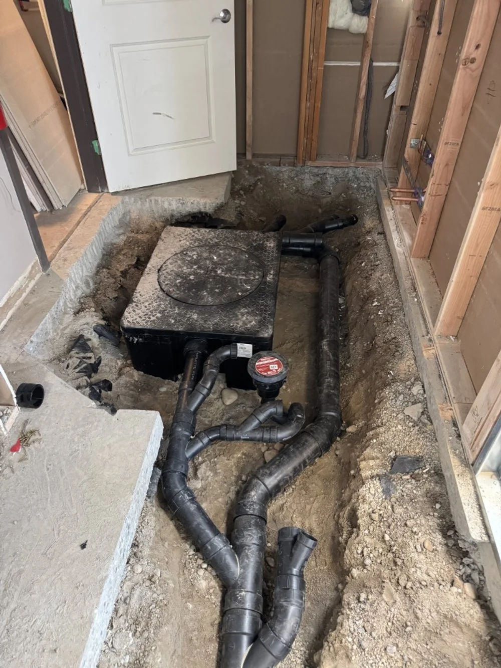 The early phases of construction focused on the unglamorous but essential work: cutting into the concrete, trenching the floors, and installing underground plumbing and rough-ins. That phase looked like organized chaos - holes in the ground, exposed pipes, and markings everywhere, but it laid the foundation for everything that followed.