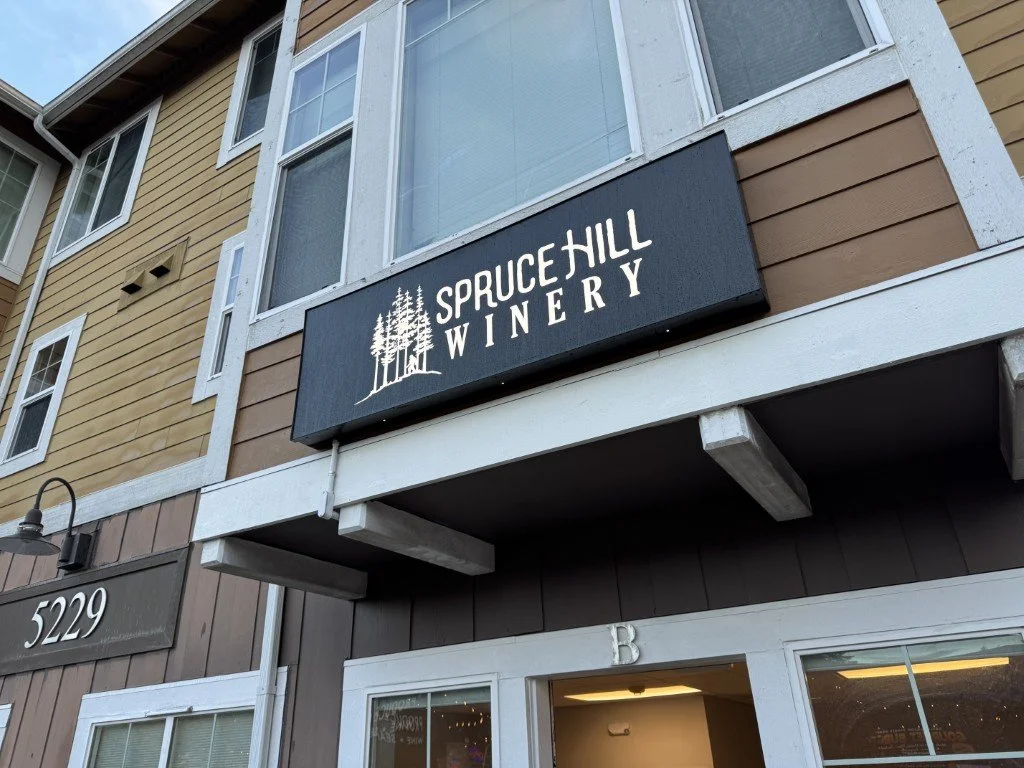 The outside is starting to match the vision — signage is up and the Gig Harbor tasting room is officially taking shape.